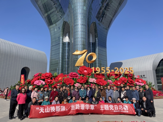 10月10日,离退休职工服务处党委组织70余名在职与退休党员代表赴乌鲁木齐文化中心展览馆,开展“天山换新颜 丝路谱华章”主题党日活动。党员们通过参观主题成就展、支部微党课和知识问答等形式,回顾新疆发展历程,感悟时代变迁,凝聚奋进力量。
